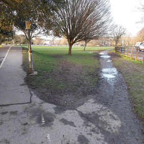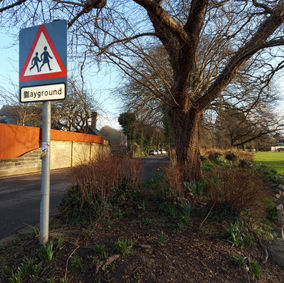 5. Follow footpath alongside the road until you come to where the paths make a 'V' shape (not as far as the bowling green). Look in the tree in the middle of the V.