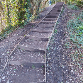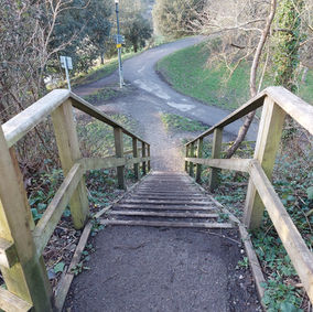 13. Nearly there! When you get to Coney Gut, Walk down the steps towards the sign. Turn right 90 degrees, walk 8 paces towards Barnstaple then take a step down the bank and look for the last pebble!