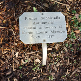 3. Stay on this path for about 20m. At small tree with white bark on the right, look left for the 'Autumn tree'.