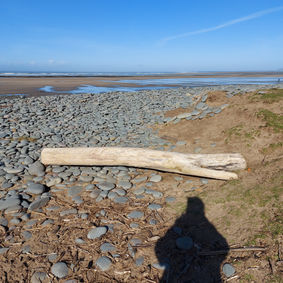 12. Another stroll along the beach for 15 mins to find the Loch Ness Monster on the pebble ridge (log that looks like Nessie!) just before you get to the ramp back to the car park where the lifeguard hut is in the summer for number 12.