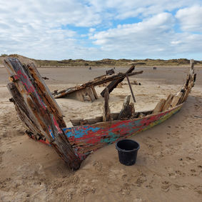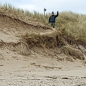8.Follow along the dunes up river until you round the point. Find the red and yellow boat swallowed up by the sand! You might want to sneak a peak at the photo of this one to spot Mike hiding the pebble!!