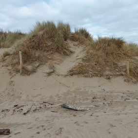 7. When you reach the lighthouse, stand with your back towards the lighthouse and look at the sand dunes. Number 7 is hidden by one of the posts that you can see in the sand dunes - not the one with the flowers attached to the top.