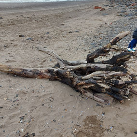 4. Head to the beach. Walk past the acorn sign and turn right and 'surf the wave' to the large driftwood tree trunk!